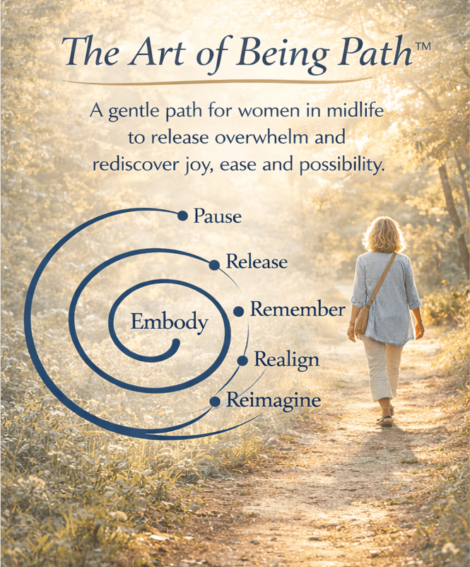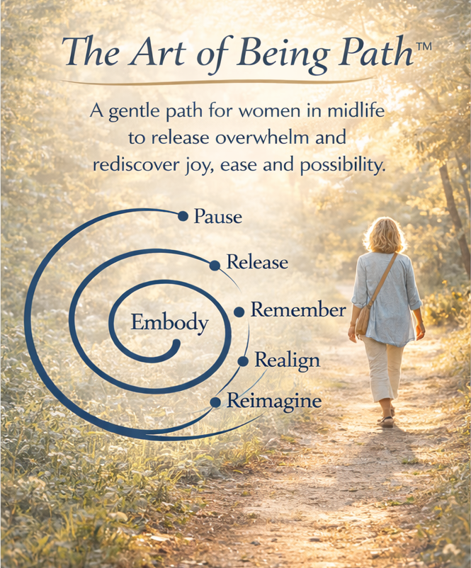 The Art of Being Path™ is a gentle path for women in midlife to release overwhelm and rediscover joy, ease and possibility.